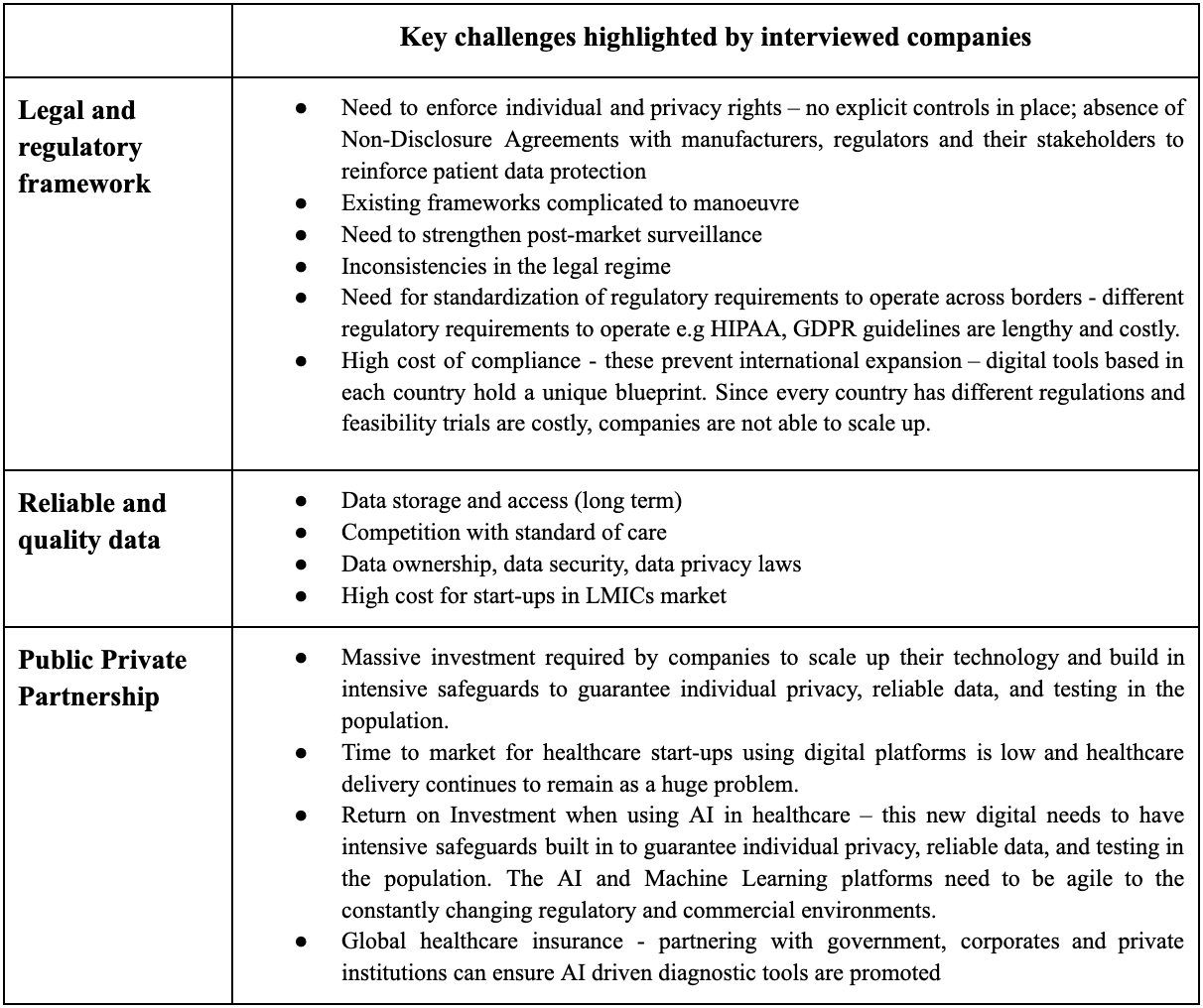 Table 1: Main challenges to scaling up by AI-powered health companies in LMIC